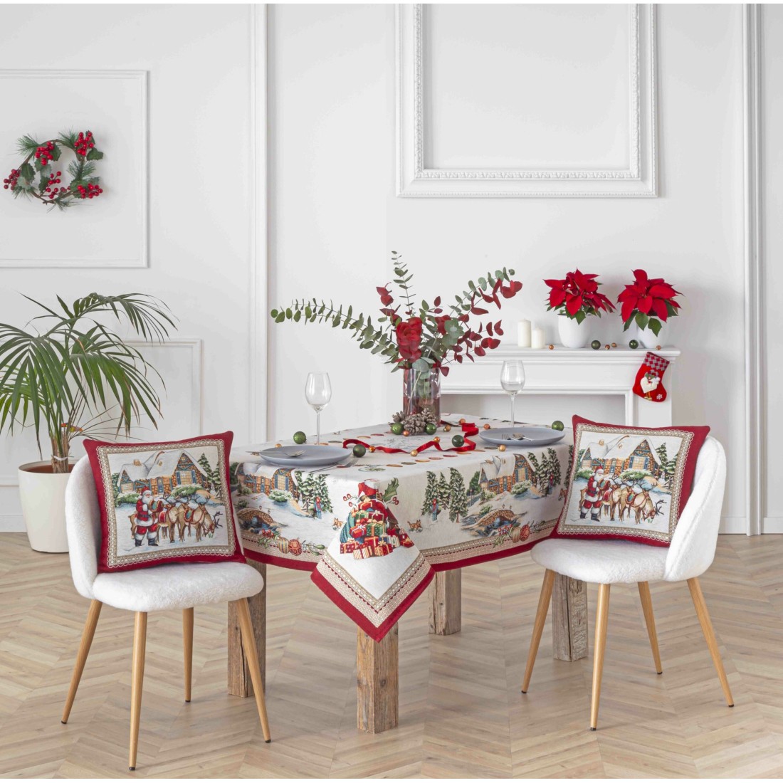 Jacquard cushion with Nativity and shepherds on beige background. 45x45 NATIVIDAD C.41