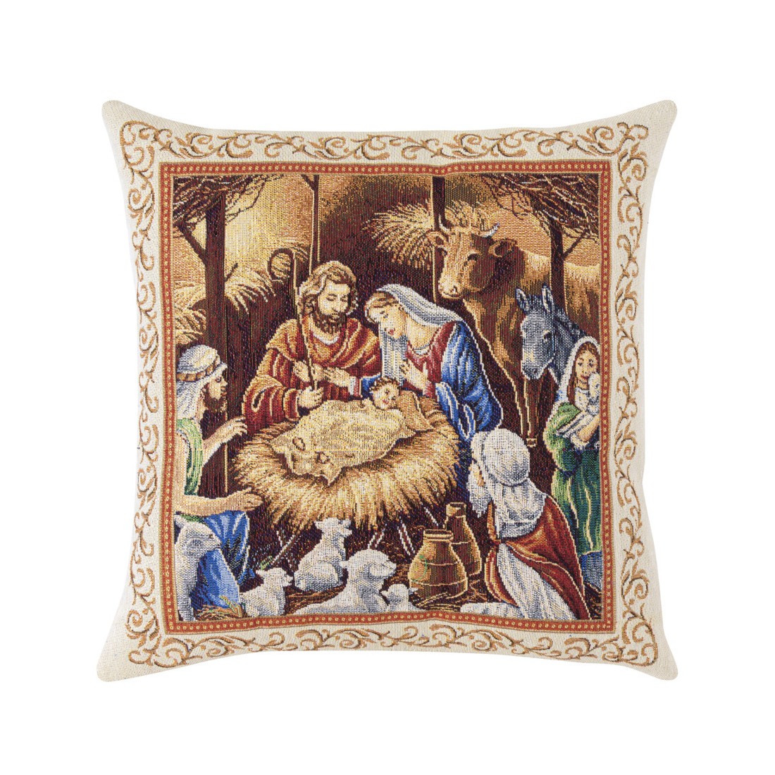 Jacquard cushion with Nativity and shepherds on beige background. 45x45 NATIVIDAD C.41