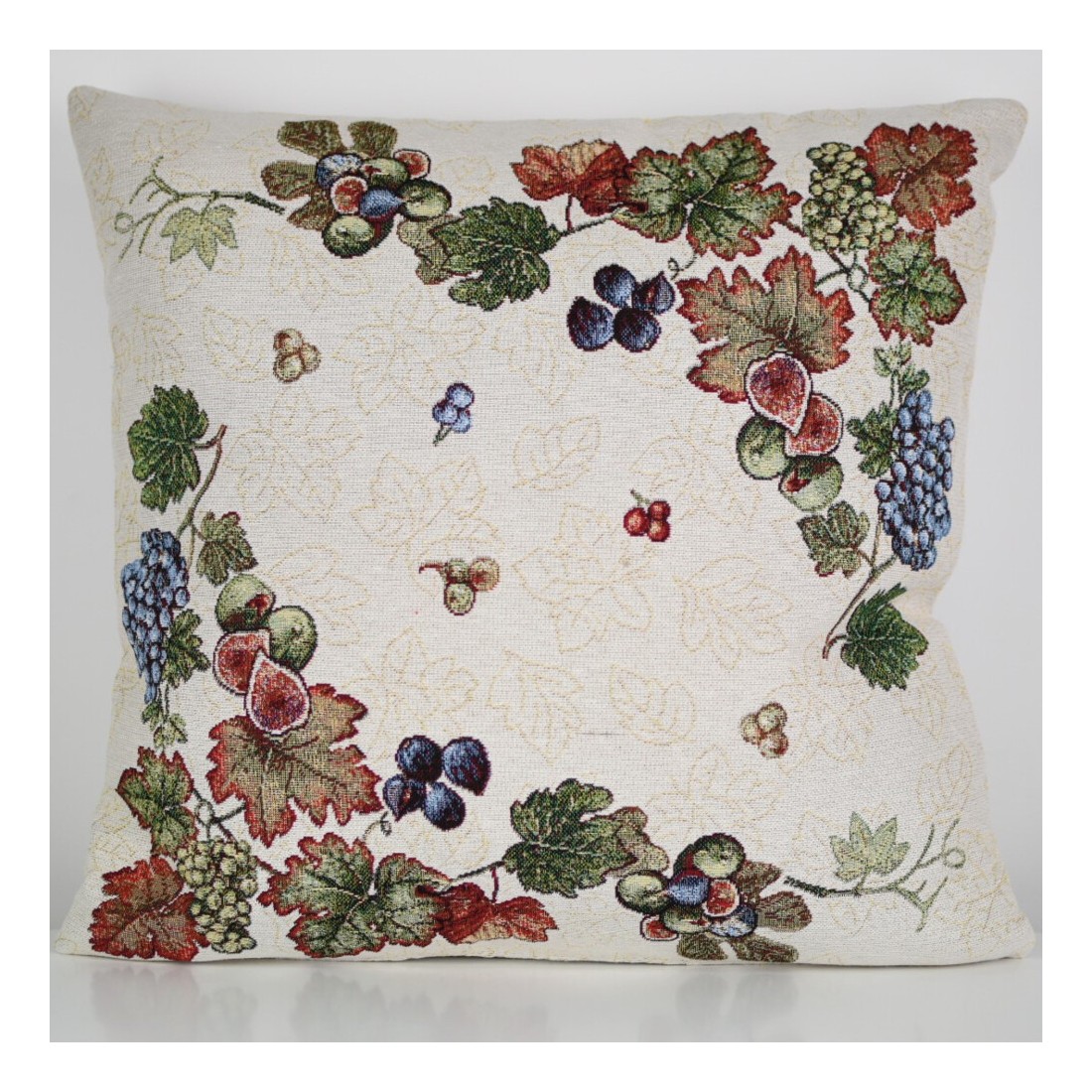 Jacquard cushion cover with vine leaves, grape clusters, and figs. Washable. Zipper closure. PARRA