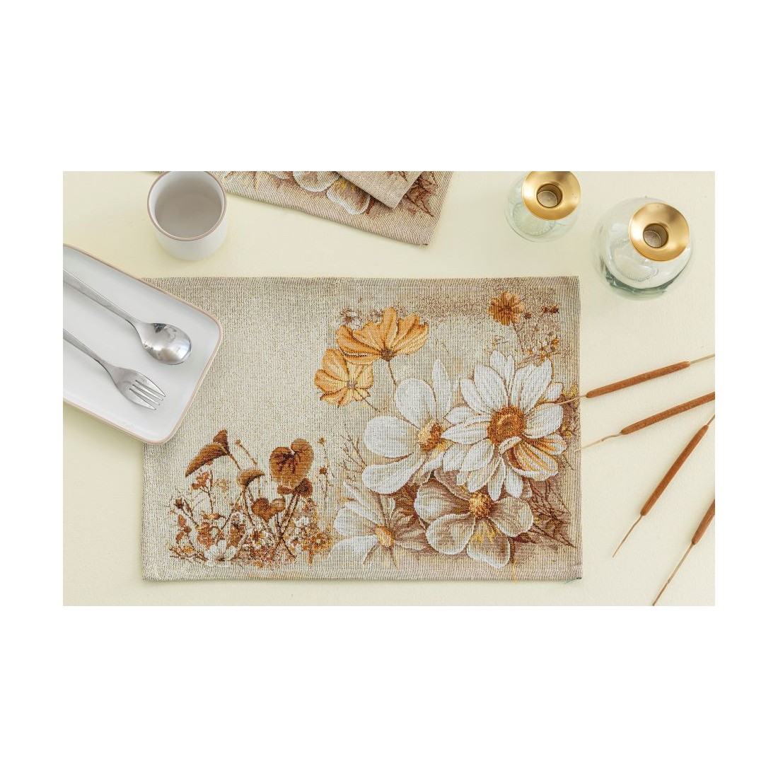 Jacquard placemat set with golden flower beige background. 30x45 NITRA