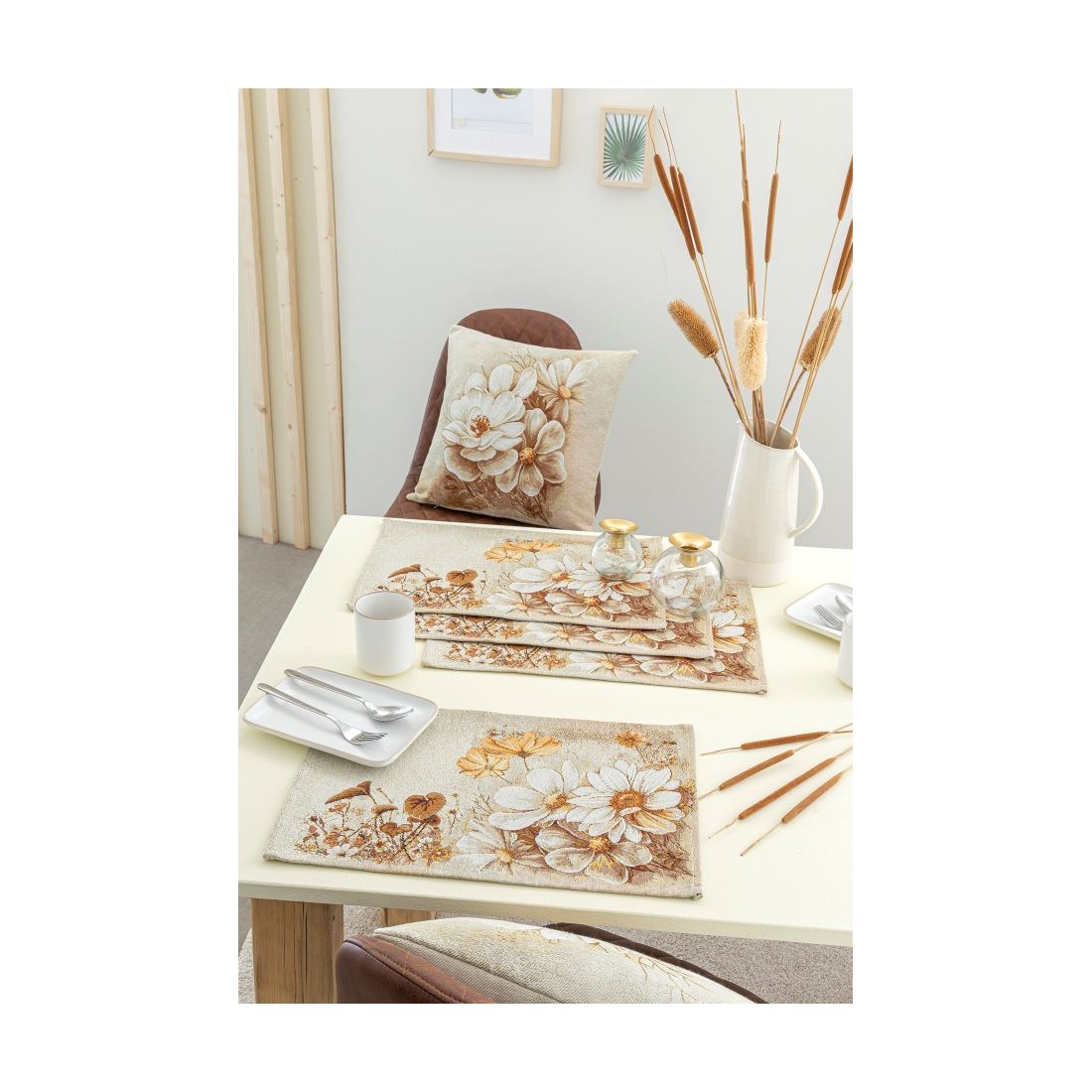 Jacquard placemat set with flowers and beige background 30x45 Xana