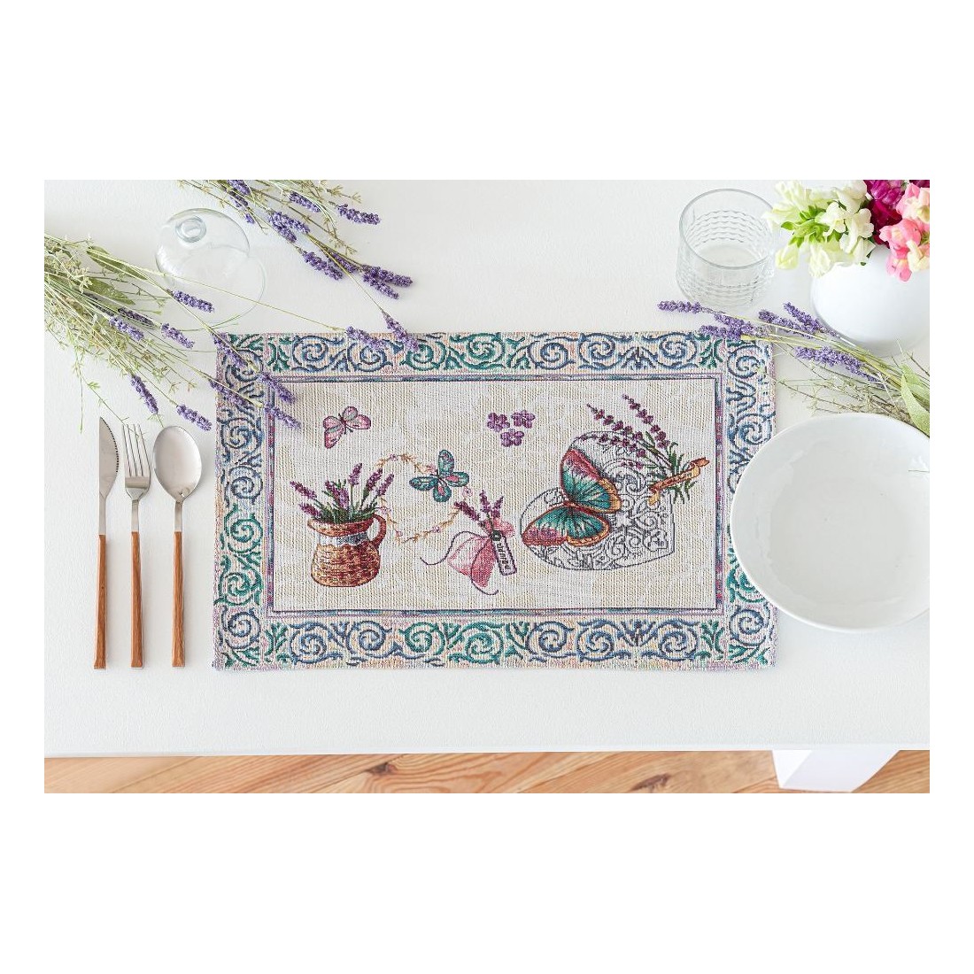 Jacquard placemat set with lavender flowers. Washable. LAVANDER.