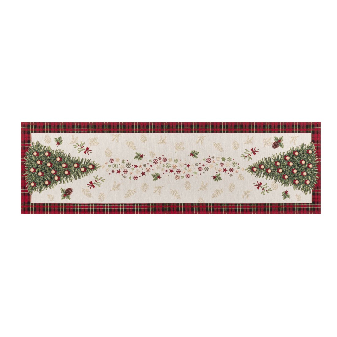 Camino de mesa de tejido jacquard con Papa Noel y ciudad navideña 40x135. VILLAGE