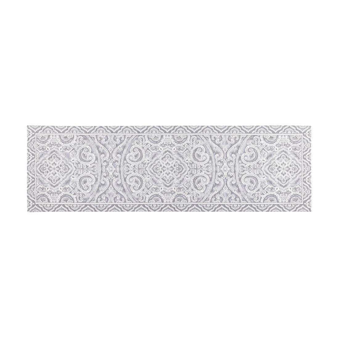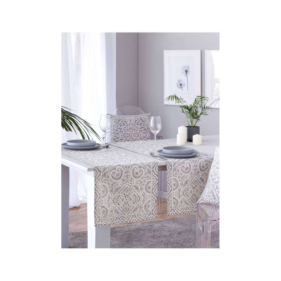 Camino de mesa de tejido Jacquard con motivos geometricos con tonalidad gris MYKONOS C.6.