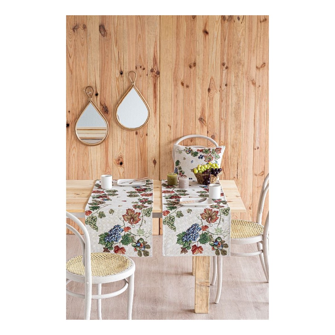 Camino de mesa de tejido jacquard con hojas de parra, racimos de uva e higos. Lavable. PARRA.