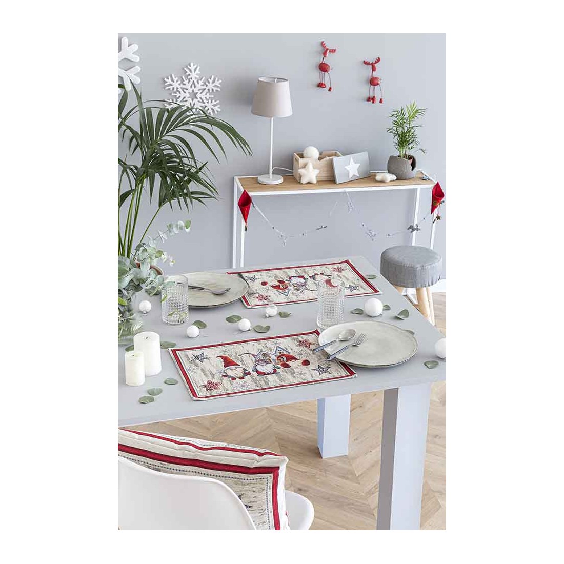 Set individual de mesa de tejido jacquard con corona y motivos navideños 30x45 FIDELITY
