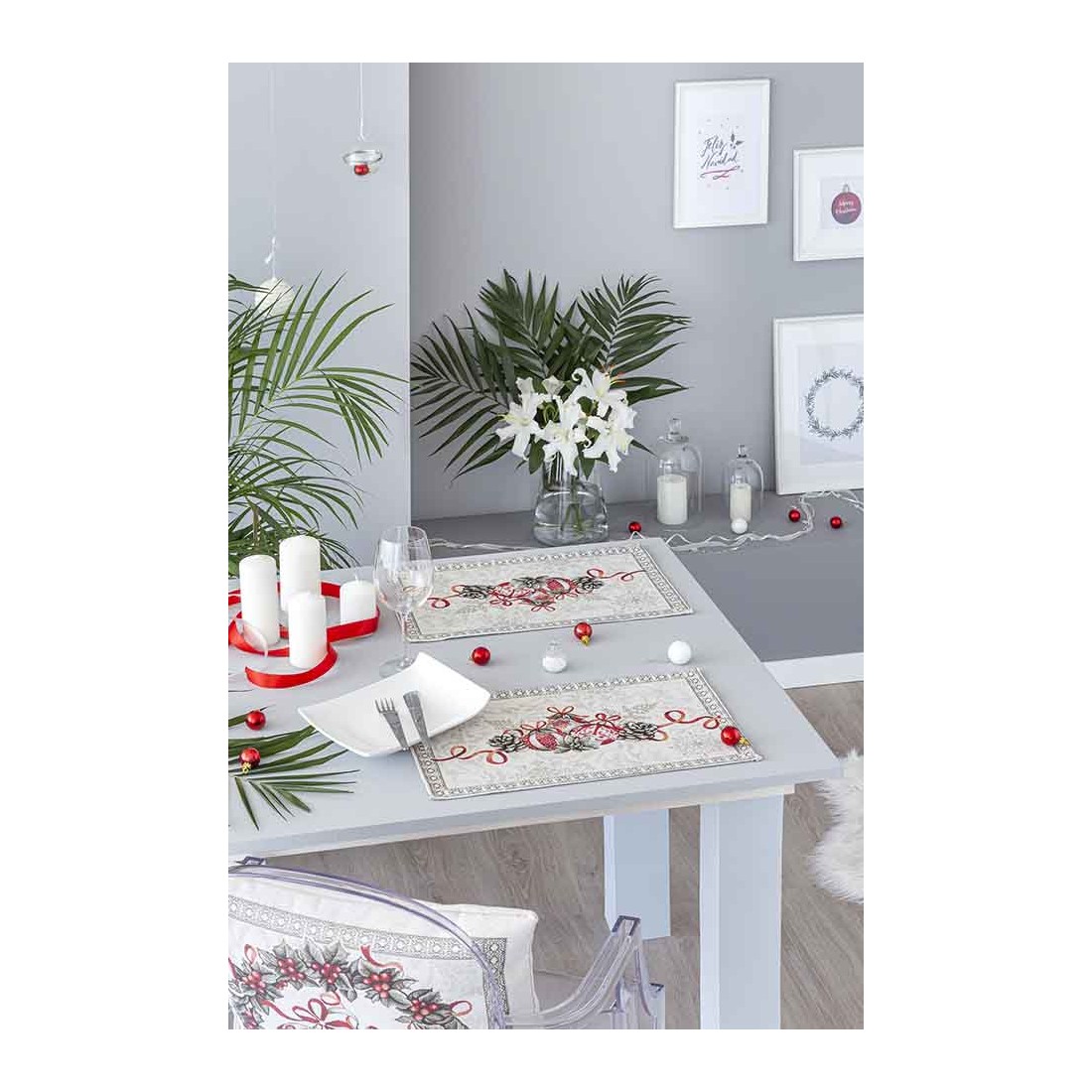 Set individual de mesa de tejido Jacquard con motivos geométricos grises 30x45. MYKONOS C6