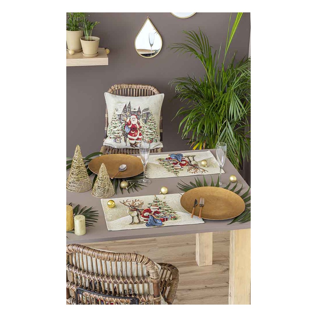 Set individual de mesa de tejido jacquard con Papa Noel y reno. 30X45 VILLAGE